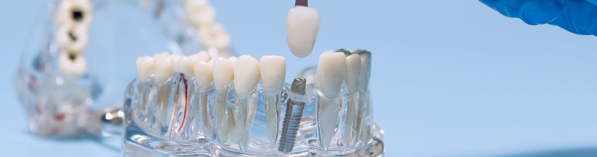 Trata-se da instalação de pinos de titânio no osso, que funcionam como raízes artificiais. Sobre eles, são fixadas coroas ou próteses, devolvendo ao paciente a sensação de um dente natural — tanto na função quanto na aparência.